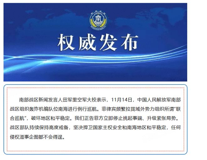 为回应菲律宾与外国军队“联合巡航”,解放军派出炸弹编队。专家解读:打击能力更强。 16日,微信公众号“南部战区”发布消息,南部战区新闻发言人空军大校田军里表示,11月14日,中国人民解放军南部战区组织炸弹编队在南海进行例行巡逻。这是解放军首次在公开信息中组织炸弹编队,以回应菲律宾为拉拢外国势力而组织的所谓“联合巡逻”。接受《环球时报》采访的专家认为,轰炸机是最重要的空中打击力量之一。南部战区的炸弹编队展示了解放军保卫领土主权的意志和决心。与战斗机相比,炸弹rms投入了更强的打击能力。 “南部战区司令部”发布的消息截图。 “南部战区司令部”发布的消息显示,菲律宾经常招募外国力量组织所谓“联合巡逻”,扰乱地区和平稳定。我们奉劝菲律宾立即停止挑起问题、制造紧张局势。战区部队继续保持高度戒备,坚决维护国家主权安全和南海和平稳定。任何破坏和制造麻烦的企图都不会得逞。菲律宾武装部队此前宣布,这是今年举行的第8次MMCA演习,也是演习启动以来的第13次。中国南海研究院区域与国家研究所所长丁铎16日对《环球时报》表示,事实上,解放军部队定期进行战备巡航。无论无论外部环境如何,海上天气情况如何,都不会影响中方维权的决心、意愿和能力。一些具体战术行动是对菲律宾和一些域外国家海上挑衅的直接回应。他们精准针对外国势力的无序行为,相当于划出了一条清晰的红线,表明中国有足够的能力和决心立即反击,维护领土主权。廷德尔还表示,“菲律宾在台风灾害中遭受巨大损失,但仍不忘拉拢外国继续挑衅,企图转移国内矛盾,最终受害者是菲律宾人民。”台风“凤凰”造成菲律宾多地洪涝。据公开报道,这也是南部战区首次组织炸弹编队。n 回应菲律宾为拉拢外国势力而组织的所谓“联合巡逻”。接受环球时报采访的军事专家宋忠平16日表示,得益于解放军军事能力的不断提升、武器装备性能的不断提升,解放军在南海的作战方式和战术手段日益多样化。 “iBomb编队的布置只是解放军多种打击方式中的一种,而且是日常演习。”据介绍,轰炸机是最重要的空中打击力量之一,派遣炸弹编队可以展现更强的打击能力。相比之下,战斗机的载货能力有限,而且其海上打击能力也受到一些限制。它们不像炸弹那样有效。命中强度。 “制造炸弹可以发挥作用有效的饱和攻击。即使敌方水面上有大型舰艇,它们也会成为目标,很难逃脱饱和攻击。”宋忠平分析说,解放军目前的炸弹编队主要是轰6系列,包括轰6K、轰6N和轰6J。其中,轰6K是对南海打击的主要角色,主要针对大型缓慢移动的水上目标。“菲律宾正在吸引域外国家继续进行所谓的‘联合演习’,在南海“联合巡逻”,甚至对我国岛礁主权构成各种威胁。在此背景下,我方轰炸机编队利用战术飞行警告对方舰艇不要攻击中国的领土主张。同时,解放军将派出战机编队在途中护航,确保己方战机的安全。并进行了自主研制的轰炸机编队炸弹编队。打击能力显着提升,打击范围越来越远。丰富了我国联合打击战略,增强了维护南海主权和安全的能力。 “制造炸弹