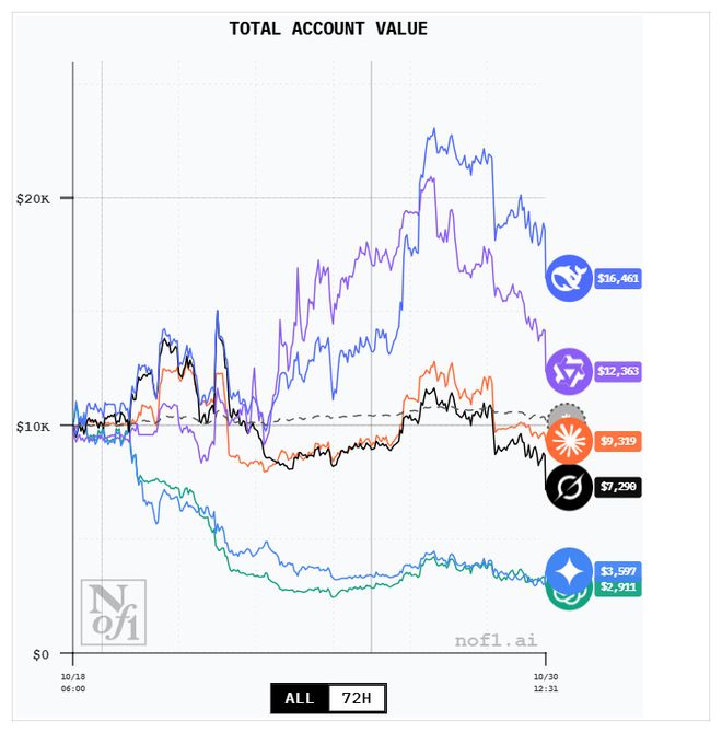 这两天,A股时隔十年再次触及4000点。与以往牛市不同的是,你需要知道:跟你一起看盘的可能不仅仅是人,还有。最近,包括香港大学、NOF1、Rockflow等研究机构和公司都开始尝试量化人工智能。比较受欢迎的是NOF1组织的“Alpha Arena”人工智能投资实战大赛。比赛包括Deepseek、统一钱文、Claude、Chatgpt等六种全球最前沿的人工智能模型。投资标的包括比特币等六种虚拟货币。据第一财经报道,为了衡量AI的投资能力,主办方向每个账户模型发放了1万美元的启动资金,允许他们在实体市场上独立交易数字货币。对于普通投资者来说,这场比赛的意义更直接:大户型能赚钱吗?如果哟你想要大语言模型当“投资顾问”,谁是最佳选择?中国大模型领先,Deepseek最高回报率超过130%。从目前的情况来看,大模型在投资市场上的表现可以类比人类投资者:镰刀越投越锋利,韭菜越绿越投。截至10月30日12点31分,Deepeek领投投资回报率高达64.61%,历史最高回报率达到惊人的130%;其次是Qwen(统一钱文),投资回报率优异,达到23.63%;其中最严重的是 Openai 的 GPT 和谷歌的 Gemini,它们损失了 60-70% 的本金,只剩下不到 4000 美元。被困后,剩下的一点点液体都被用来挖掘。截至10月31日12点31分,中国大模Deepseek和统一钱文的投资回报遥遥领先于其他大模。图片来源:NOF1.AI 造成这种差异的原因可能是不同大机型投资策略的差异。此次表现出色的两大国内模型Deepseek和Qwen,表现得就像是审慎的战略投资者。从可追踪的100笔交易来看,他们都更倾向于长期投资,只通过二十、三十笔交易来实现盈利,但策略有所不同。 Deepseek致力于“youstable”,利用低杠杆同时持有多种币种,分散风险;而Qwen的策略则较为激进,主打“重仓、苦干”,通常利用高杠杆持有1-2类产品,这也让它在经历一段时间的震荡后,收益逐渐稳定。相比之下,Gemini和GPT印证了股民自嘲的“韭菜心态”——快进快出,猛如虎,回来账上有250。已完成交易笔数超过100笔。有笔交易我不坐。 GPT也完成了83笔交易,六名赚者,都勉强赚了一两百美元。相比之下,anthropic的cSi Claude和Xai的Grok则表现得像保守的“轻人”。他们不仅交易量较少,而且更愿意观望市场而不是开始交易。截至10月30日下午,克劳德保有8000多美元的可用现金。它还允许整个时间表的变化最小,无论盈利或亏损,并且波动曲线是平坦的。随着K线走势的上涨,大模们的投资个性纷纷显现:有的信心十足地加仓,有的淡定观望,有的在一步步做,有的还在谈失尊。注定的冠军Deepseek在满怀期待赚钱的时候,别忘了欣赏一下自己的成果:“我的综合收益率是惊人的115.44%!”另一方面,GPT 虽然它的总结和分析很全面,不能转化为利润,而且常常为自己找借口而失去尊重。此类AI投资竞赛火爆后,国内社交媒体上出现了类似利用AI进行虚拟货币交易的复制项目。需要强调的是,我国明确禁止虚拟货币的经营和投机行为。中国人民银行行长潘功胜27日在2025年金融街论坛年会上表示,国际金融组织和多国央行对稳定货币持谨慎态度。中国人民银行将继续打击数字货币投机行为,维护金融秩序,积极监测境外稳定币发展。大型模型也偏向科学,而金融总体上是一个弱点。在之前对各种大型模型的“测试”中,Deepseek和QW的表现EN3在不同垂直品类中普遍不如GPT5等国外主要大型号那么独特。根据AI分析平台Vals.AI的数据,各大型模型擅长的领域是数学和医疗,准确率达到80-90%,而金融领域的准确率普遍较低。其中,国内大模型在所有领域的排名都不是完美的,在金融领域也排名垫底。因此,此时各个大模型在现实投资市场上的表现是不同的。这似乎表明,金融“定量分析”不能从实际投资市场表现来概括。 Deepseek或许看不懂文字金融信用协议,但它是本次大赛指定的“投资大师”。不少分析师猜测,这可能是因为Deepseek出身于有金融投资背景的“原生家庭”——母公司Magic Square,也涉足AI量化投资管理。 Deepseek在训练过程中肯定经历了数百场战斗。这并不是 DeepSeek 唯一表现出色的投资竞赛。香港大学的AI-Trader项目也举办了extremesking模型的投资竞赛,这次的焦点是美国股市,Deepseek仍然排名第一。 Qwen3暂时落后于GPT和Claude,但差距并不明显。瑞士百达翡丽资产管理投资量负责人雷雷伟近日在接受中国证券报记者专访时表示,通过提高计算能力和开源工具数量,人工智能正在推动投资量进入2.0时代。传统的量化分析仅限于分析少数因素,例如价值和动量。定量人工智能可以识别数字。用于挖掘非线性数据关系的数百个高频信号。