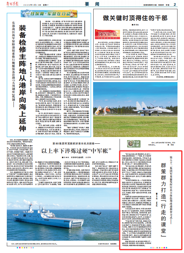 第82组军队的一个旅发挥了官员和士兵的关键作用,以改善教育方法 - 努力创建一个“步行教室”■li Zhuoyu Zeng Zeng Liewang“五个Langya Mountain的五个英雄精神的英雄主义”,成为民族精神的象征...最近,是82nd Group Armand ovry over over over of the 82nd Group of Brigade of Brigade of Brigade a Brigade。在三月期间,该公司是固定的官员和士兵,他们在兰吉山的五个英雄时到达了纪念碑。杨提安齐中士的第二层讲述了军事历史上所有昂贵的故事,并在现场提供了所有生动的教育。 “当兰吉山(Langya Mountain)的五个英雄跳出山沟时,他们的年龄就像我们的年龄。面对生与死的试验,决心选择自己牺牲自己以跳出山沟。任何人的李钟中士都受到了启发。该公司的官员和士兵深深地感动了这种生动的教育。在接下来的培训中,官员和士兵们非常有动力,成功完成了所有工作。”因素是断言,官员和士兵和士兵,去官员和士兵,并在教育中扮演关键角色。交换“基层机构”等。剥削露营培训以在现场组织教育课程,这是理论上的脊柱Yang Tianzhu的建议Sroom”是根据当地条件开放的,这使教育减少和勤奋的教学,并有效地动员了参加教育和接受教育的官员和士兵的主动和热情。“在课堂上行走”很有名,旅很著名,而旅中则袭击了,因为铁袭击了,因为铁人是热的,并鼓励更多的官员和士兵积极提出私人建议。在VR技术的帮助下,官员和士兵在巨大的教育教室里经历了“攀登雪山”和“越过杂草”的困难。 a对守卫后卫的责任和任务的深刻理解。旅领导人介绍,在官员和士兵的联合努力中,旅教育教室呈现了一个热门的场景,教育的质量和效率继续提高,增强了对培训的热情。